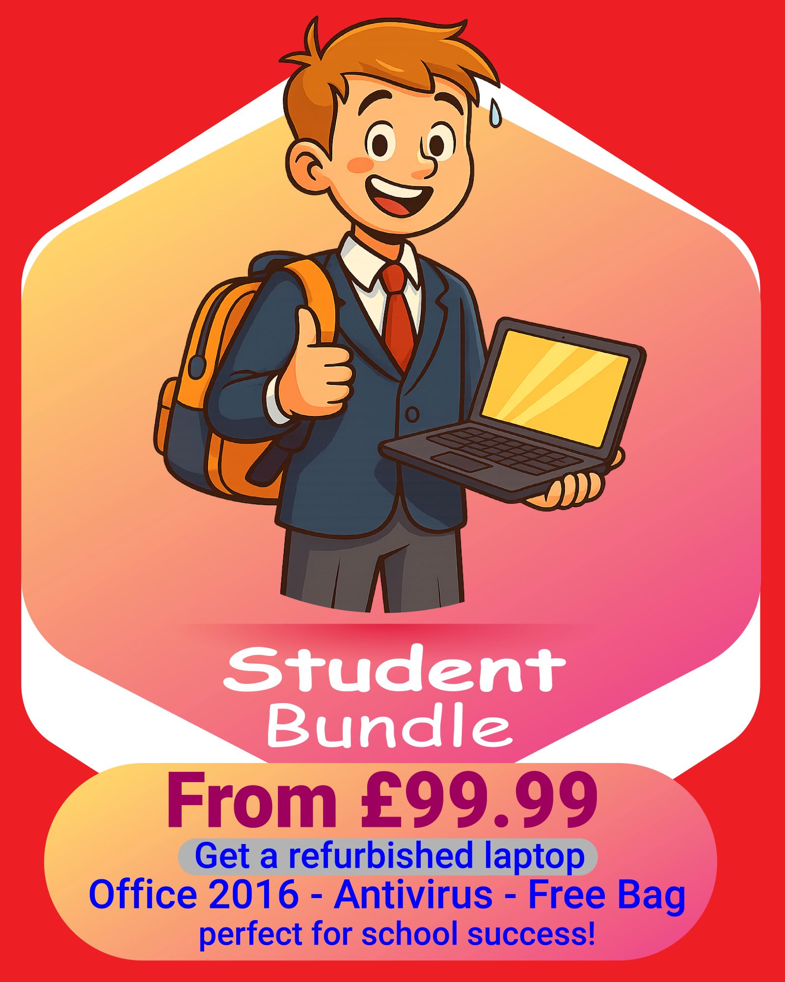 Includes a refurbished laptop, Microsoft Office 2016, antivirus software, and a FREE laptop bag!