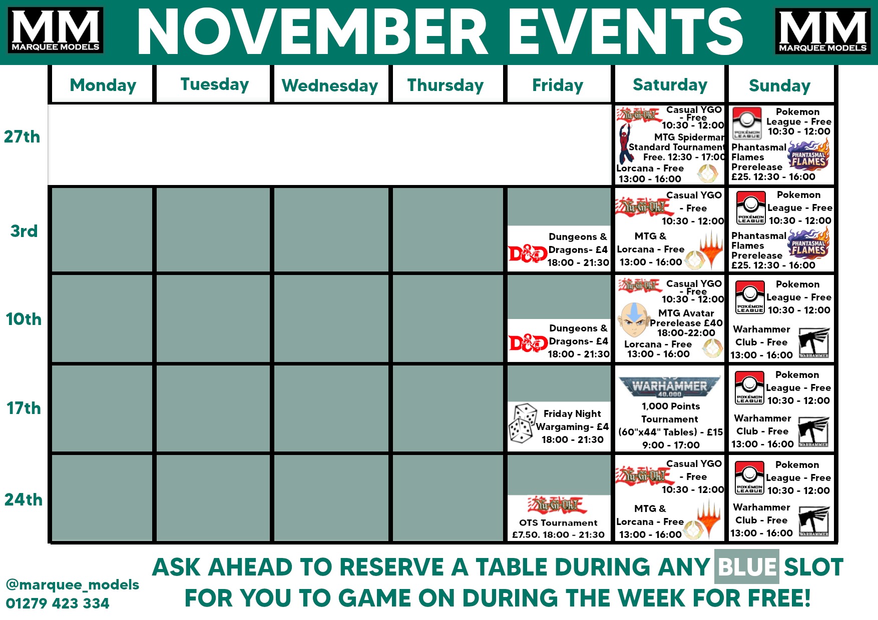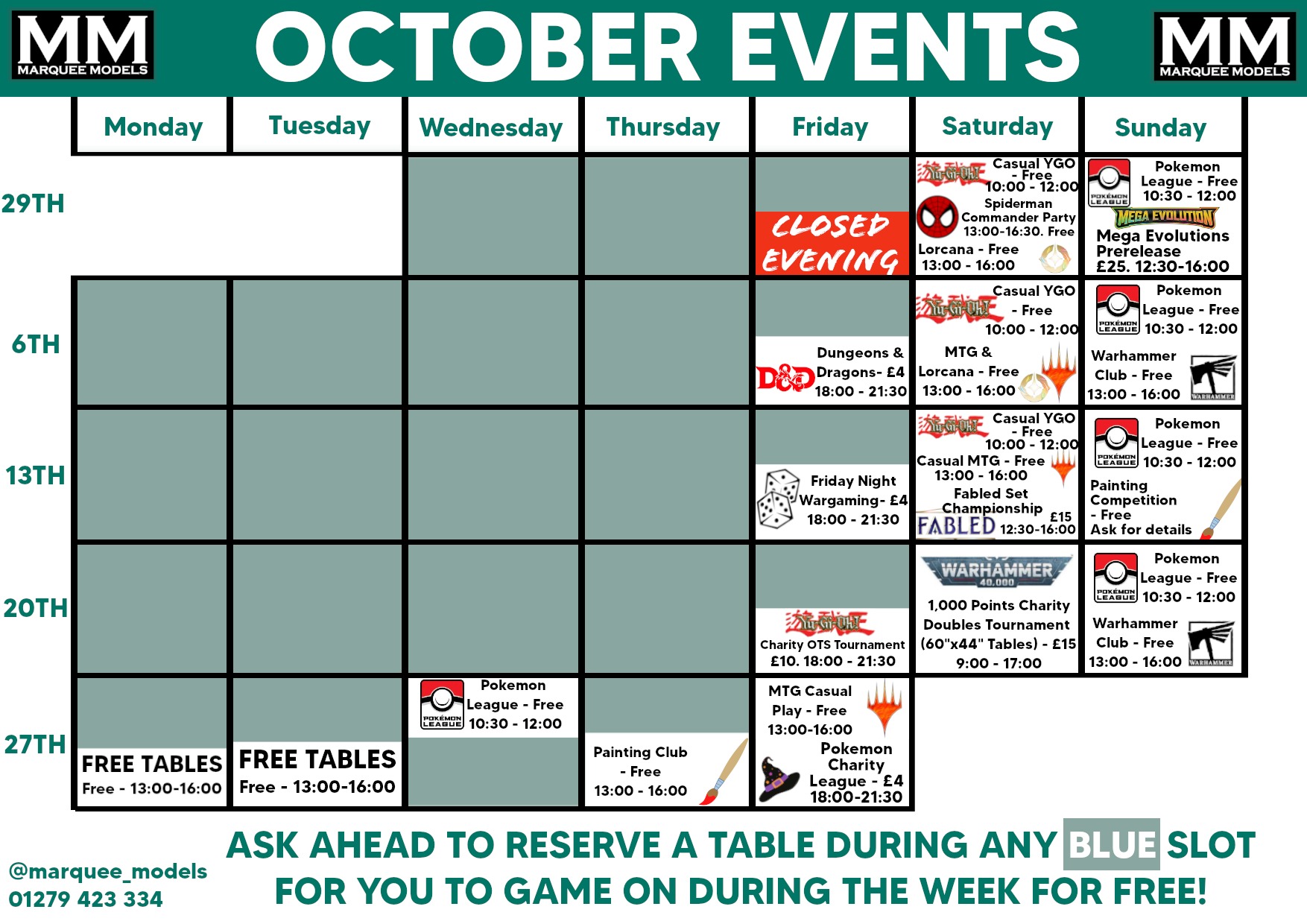 See the full schedule below and follow on Facebook to keep up to date on all the latest goings on!  @Marquee Models